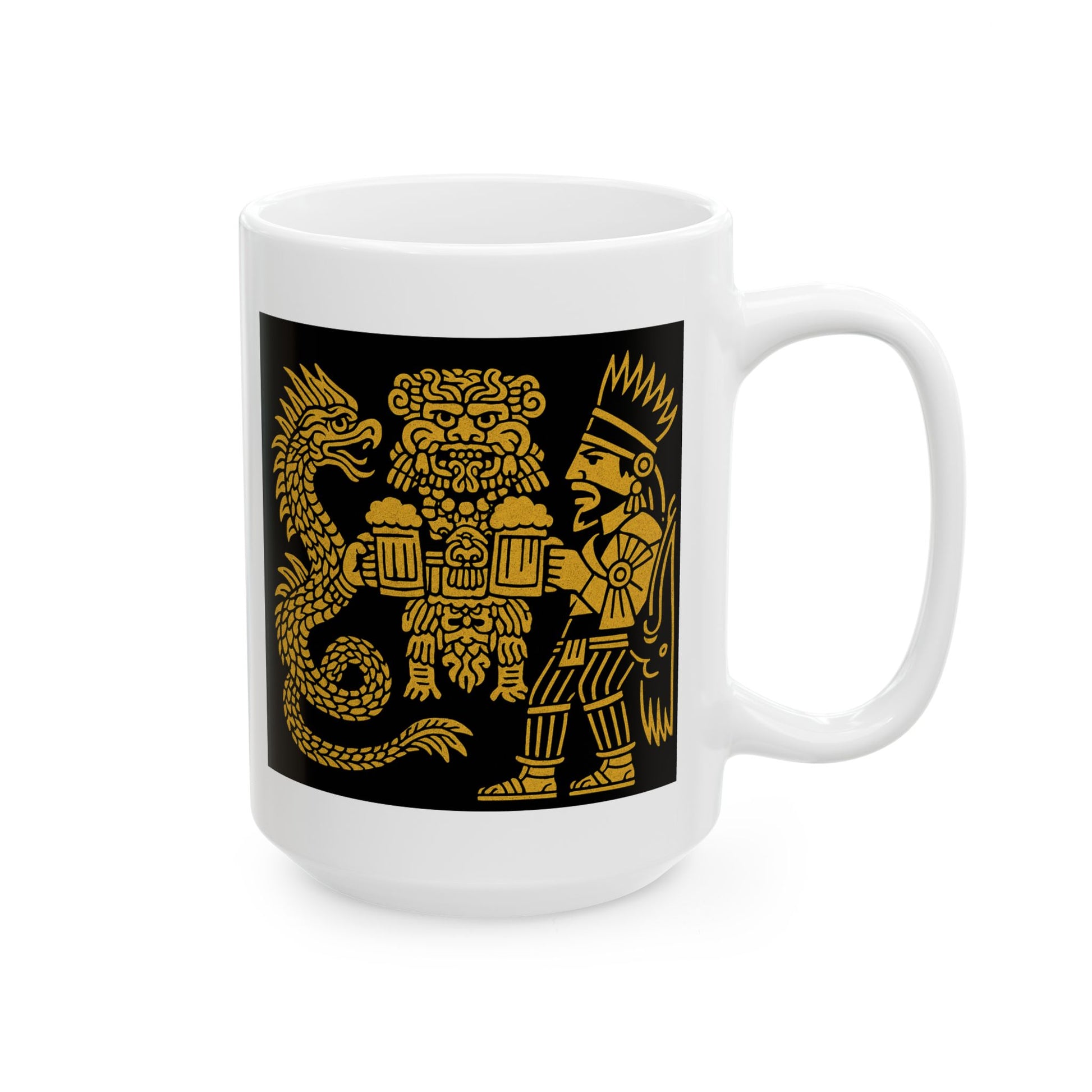 Ceramic Mug with Aztec Warriors and Dragon Design, Unique Coffee Cup, Fun Gift for Collectors, Home Decor, Celebration Mug